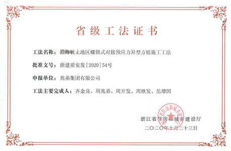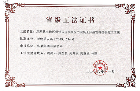 <p style="text-indent: 2em;"><span style=";font-family:微軟雅黑;font-size:14px"><span style="font-family:微軟雅黑"></span></span>公司擁有“無端板連節(jié)式竹筋管樁施工工法”“沿海軟土地區(qū)螺鎖式對接預(yù)應(yīng)力異型方樁施工工法”、“裝配式螺鎖連接異型管樁智慧植樁施工工法”、“預(yù)應(yīng)力混凝土離心樁無剪切快速強拉對接施工工法”、“無端板連接式竹筋管樁施工工法”、“機械連接預(yù)應(yīng)力混凝土竹節(jié)樁施工工法”、“深厚軟土地區(qū)螺鎖式連接預(yù)應(yīng)力混凝土異型管樁拼接施工工法”、“軟土地區(qū)螺鎖式連接剛?cè)峤M合樁施工工法”等8項國家級、省級工法技術(shù)。</p><p style="text-indent: 2em;"><br/></p>